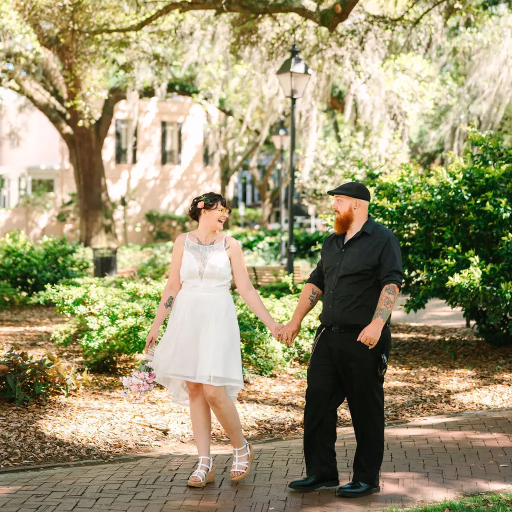 Enjoy our gallery of elopement and wedding ceremony photos in these Savannah squares!