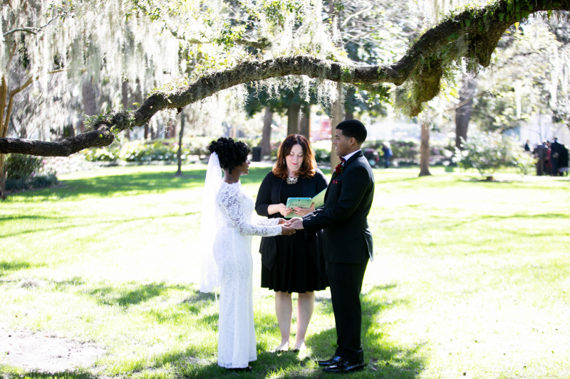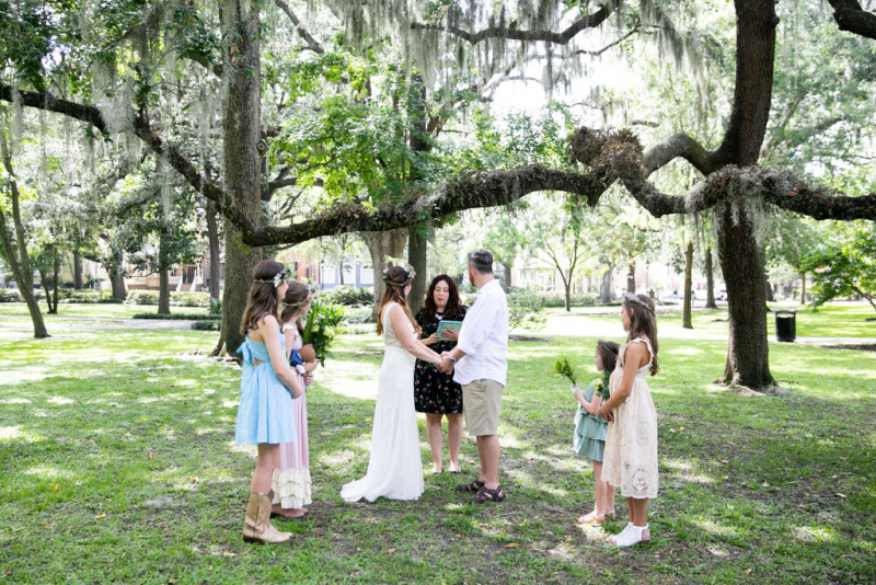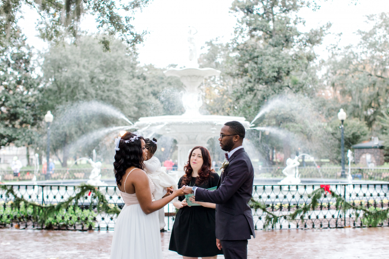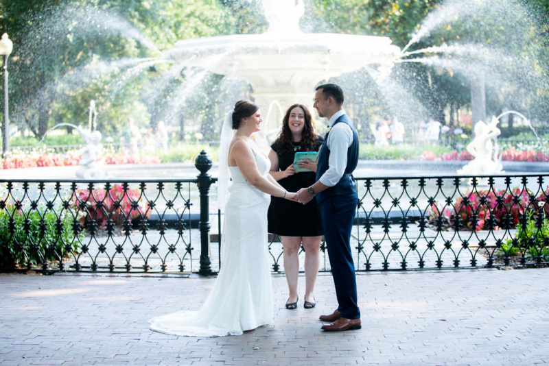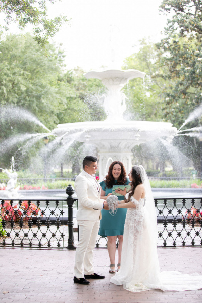 Enjoy our gallery of elopement and wedding ceremony photos at Forsyth Park!